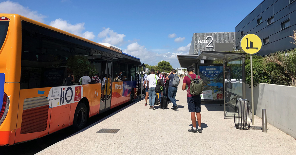 Dès votre arrivée, prenez la Navette Aéroport (ligne 620) juste à la sortie du hall des arrivées. Elle vous amène en environ 15 – 25 minutes jusqu’à la station “Place de l’Europe” dans l’est de Montpellier.