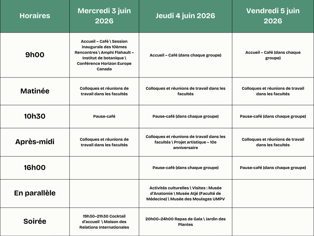 Le programme 2026Le programme sera disponible à partir de mai 2026. Voici le programme prévisionnel, en attendant le programme définitif. Programme prévisionnel